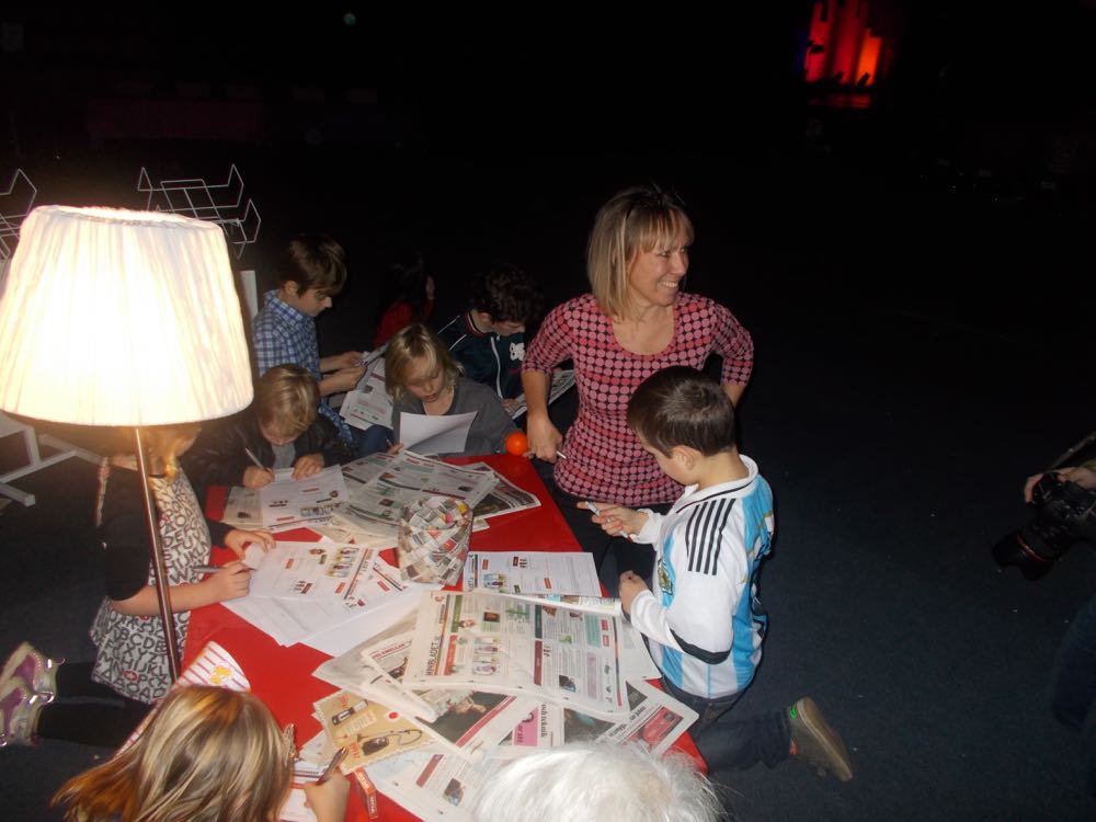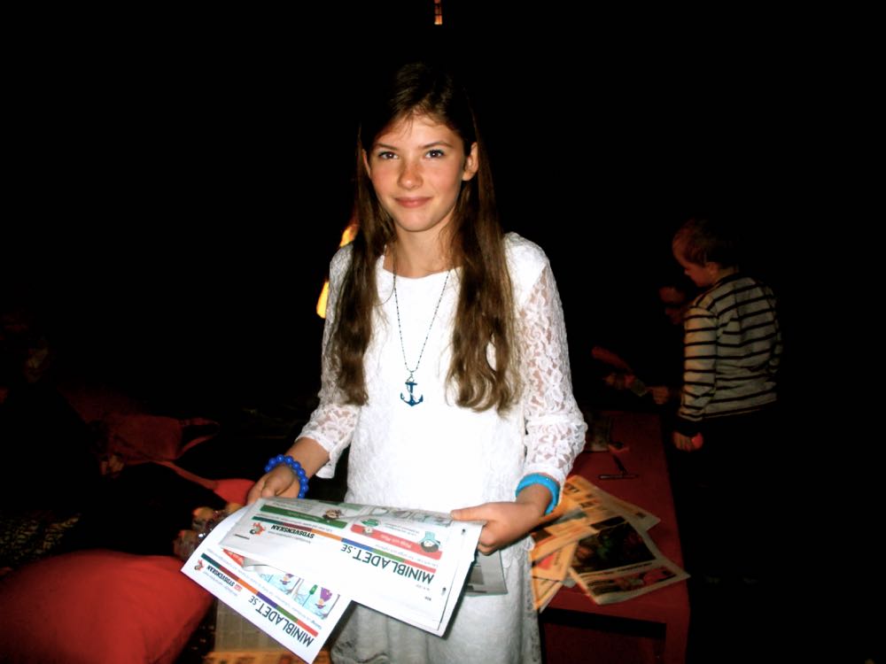MiniBladets grundare Maria McShane pysslar och hjälper barnen med vår nya tävling. Framtidens ljushuvuden.