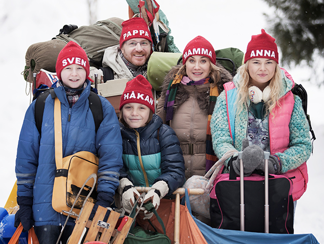 Svaret är enkelt: han övertygar sin familj att följa med. Trots att de varken har råd eller kan åka skidor. Sune lurar sin pappa Rudolf. Han säger att Sophies familj redan har betalat resan.
