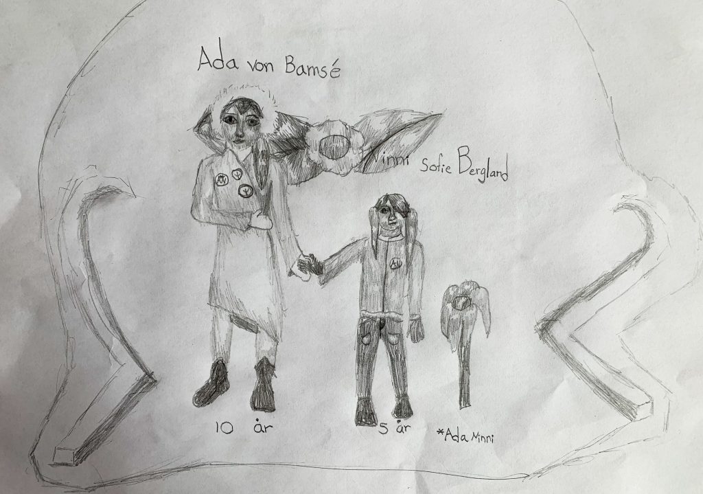Oj! Jag glömde berätta var jag bor och hur det ser ut där jag bor. Min lärare säger att jag måste skriva längre och mer beskrivande texter. Han säger även att man inte får ge kommentarer i faktatexter. Jag är usel i skolan – nej, jag menar perfekt i skolan och smart hemma, om ni inte tror mig så lyssna nu: 1+1=2 2+2=4 4+4=8 8+8=16 16+16=32 32 +32=64 64+64=128 och roten ur 128 är lika med 11,31708498985… okej, där kanske jag borde sluta. Tillbaka till var jag bor! Jag bor i Södertälje i ett vääldigt gammalt hus. Mina föräldrar är greve och grevinna och bryr sig inte ett enda dugg om mig och Alice. Alice är världens störigaste lillasyster. Jag känner bara en levande varelse som inte underskattar mig och det är Rufus, världens bästa hund! Alice säger att Rufus är hennes hund också, men då brukar jag säga att om Rufus är hennes då är NANSY BOBBOFITT min också. Men då säger Alice att hon inte vill ha Rufus för att han är en kille. Han är för gammal, säger Alice och springer iväg med utsträckt tunga. Den dan då jag insåg att jag skulle bli uppfinnare pratade Alice inte bara om sig själv, utan hon frågade mig, alltså mig, om hur Jag mådde, men sen sa hon att jag såg glad ut och att jag aldrig brukar göra det efter skolan. Då blev jag så himla arg och sa att en sån liten lortig ”prinsessa” som hatar smuts borde inte stå nära den lortiga men fantastiska Ada uppfinnaren von Bamsé! Är det bara det? Ska du bli en sån där upppinare? Frågade Alice. Vet du ens vad en uppfinnare är för någonting? Klart jag vet men du får säga det först, svarade Alice. DU ÄR SOM VÄRLDENS ENVISASTE BAJSKORV, sa jag till sist och klampade upp till mitt rum. På mitt rum låg jag och funderade. Varje cool uppfinnare har ett fräsigt namn som min idol Ada Loveless. Alltså lyssna bara, det är fantastiskt!!! Hur coolt är inte det. Hon måste nästan hittat på det själv. För vem kan heta Loveless, alltså kärlekslös till efternamn. Jaja tillbaka till mitt fantastiska namn. Folk kommer nog tycka om mitt namn när Rune Andreasson har släppt sin första tidning om Bamse, världens starkaste björn, om 72 år – och fråga mig inte hur jag kan veta det för jag ADA VON BAMSÈ ÄR FÖRE MIN TID, OKEEJ!! Jag hörde en liten knackning och sa kom in. Det var bara Pierré och en bricka med sill, torsk, löjrom och kokt potatis samt en meny på desserter. Pierré började röra lite på munnen och sa: