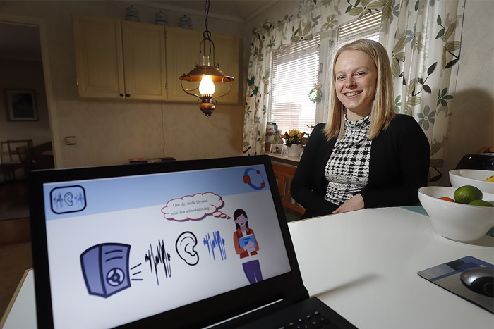 – Jag har gjort en hörselsimulation genom att koda och skapa ett program som visar hur en normalhörande hör jämfört med en person som har hörselnedsättning, förklarar hon.
