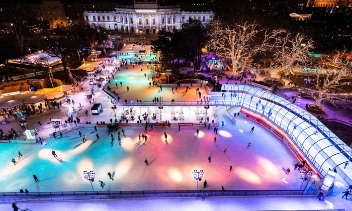 Den 9 000 kvadratmeter stora parken Wiener Eistraum, Wiens isdröm, är en viktig inspirationskälla när Malmö stad planerar en ordentlig uppryckning av vintersporten i Folkets Park. Bild: Wiener Eistraum/Viennese Ice Dream
