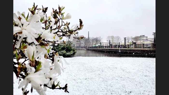 Det är bara ett par dagar man kunde gå omkring i kortärmat i 15 till 20 plusgrader så tisdagsmorgonens snöfall kom minst sagt oväntat.