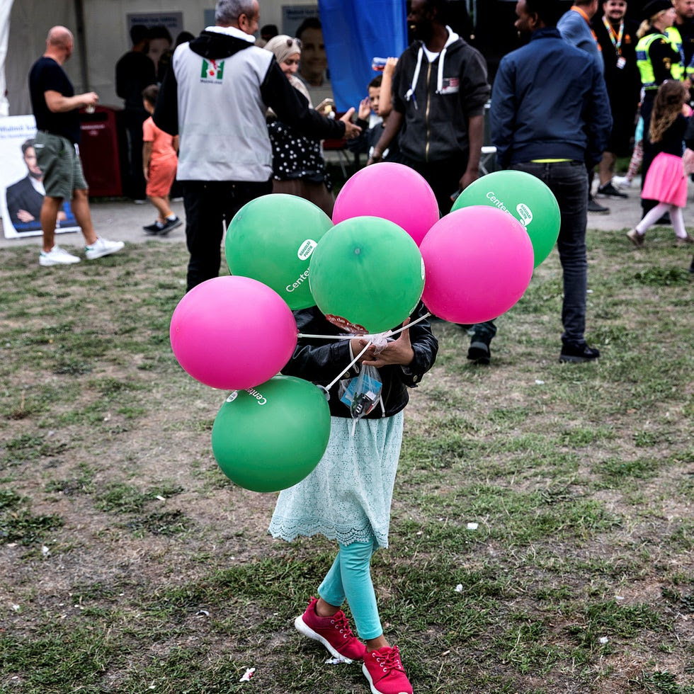 Ballonger från de olika partierna var mycker populärt bland Malmedalens unga besökare. Foto: Lars Brundin