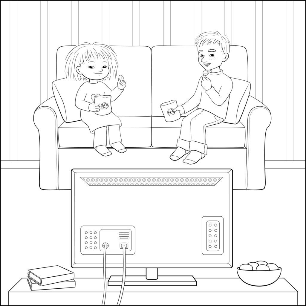 Skriv ut bilden med Minja och Mino och färglägg den.
