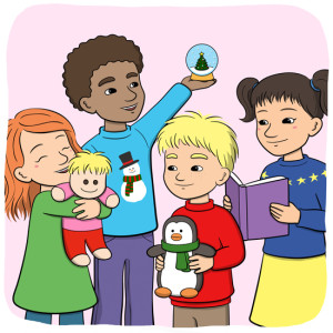 Alla barn har fått vad de önskat. De är nöjda och glada.