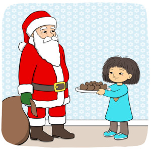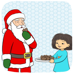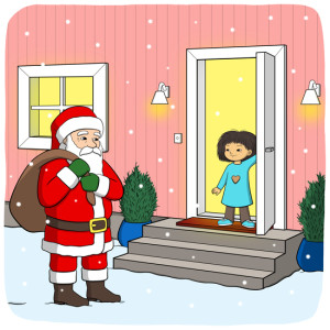 Det är jul. Tomten delar ut julklappar till alla barn som varit snälla.